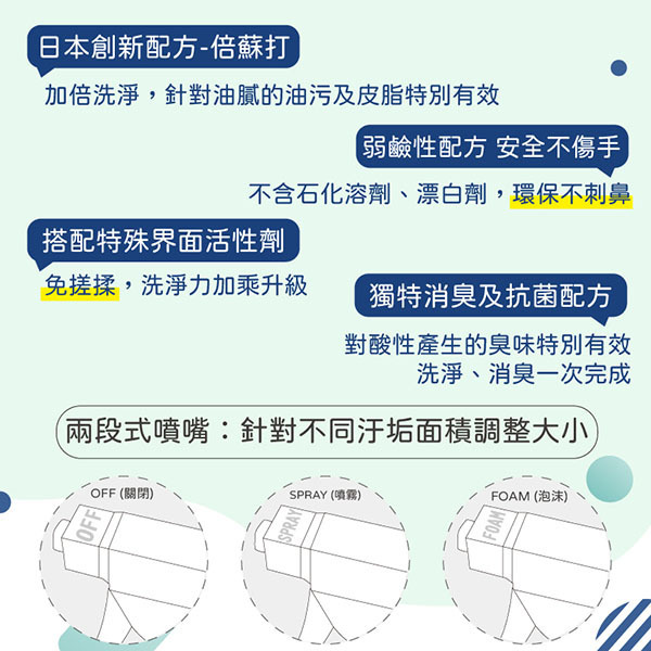 . 獨特配方具有消臭及抗菌功效,洗淨、消臭、抗菌一次完成
