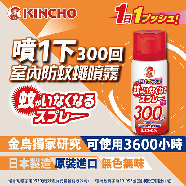 | 許可證品名:日本金鳥噴一下空間防蚊蠅噴霧劑300回(無香料) | ||||||