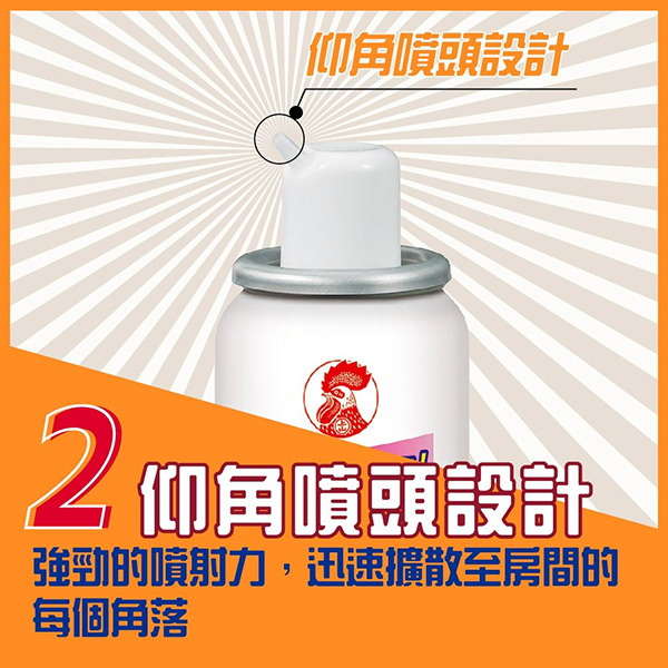 採用特殊仰角噴頭,在房間、空間中央位置按壓一下,每一噴都自動定量。
