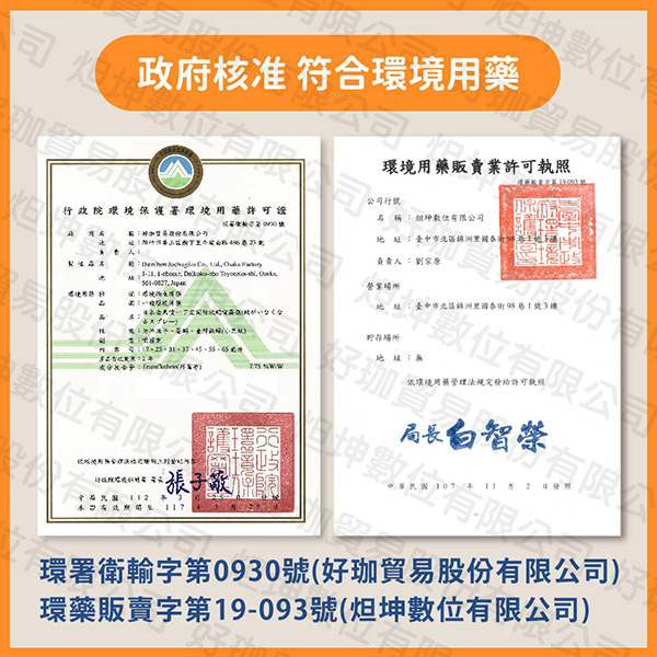 | 環境用藥販賣業許可執照字號:環藥販賣字第19-093號 | ||||||